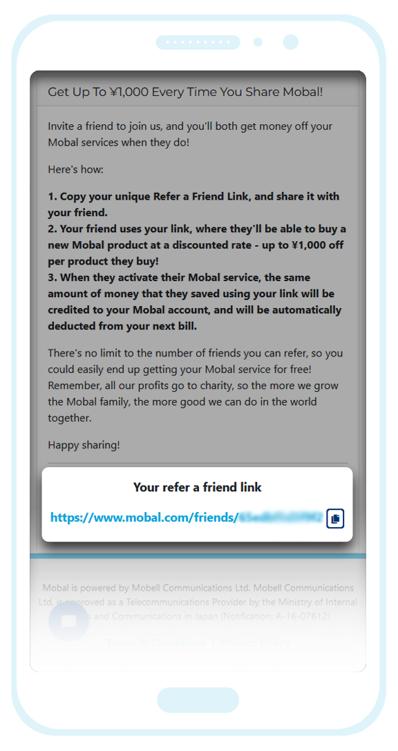 Simply tap on the "Copy" button found next to the link and then share it with the person you intend to refer to our service -