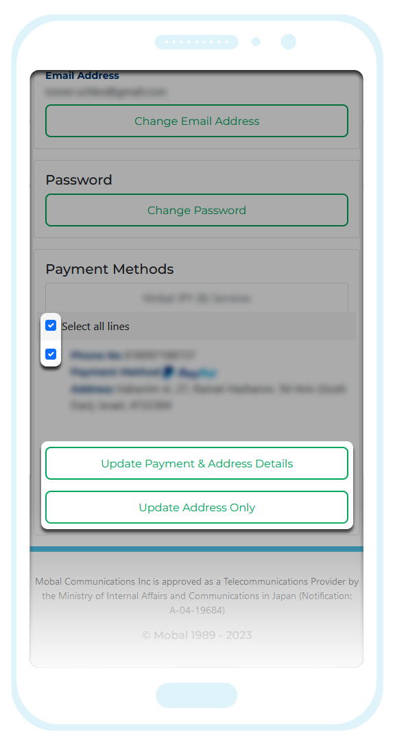 To update your billing information, please login to your online account: www.mobal.com/myaccount