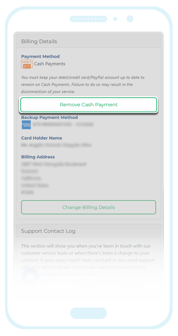 You can then scroll down to the section titled "Billing Details" and click on the "Remove Cash Payment" button as shown below -