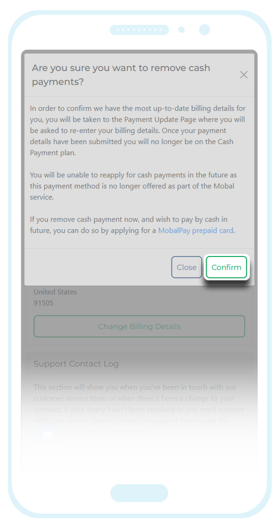 If your account remains on our original "Cash Payment" option (which was discontinued in Feb 2024) and you wish to disable it, simply login to your Mobal online account: www.mobal.com/myaccount