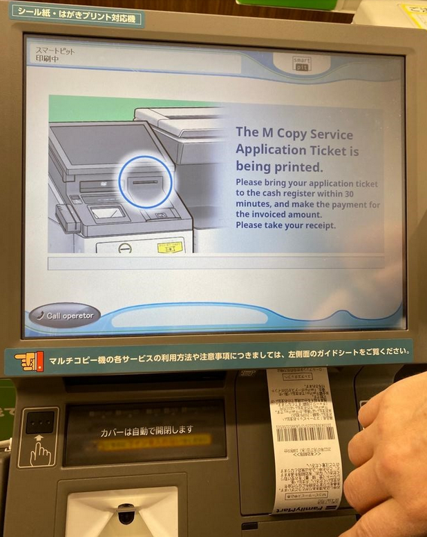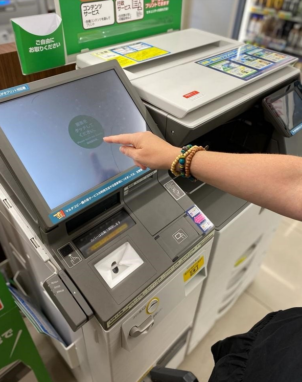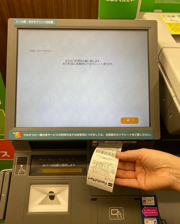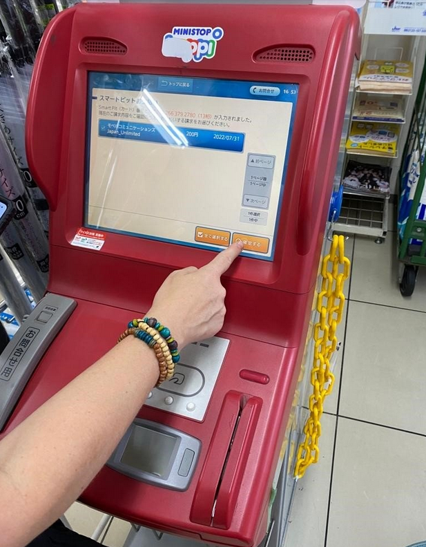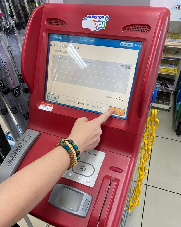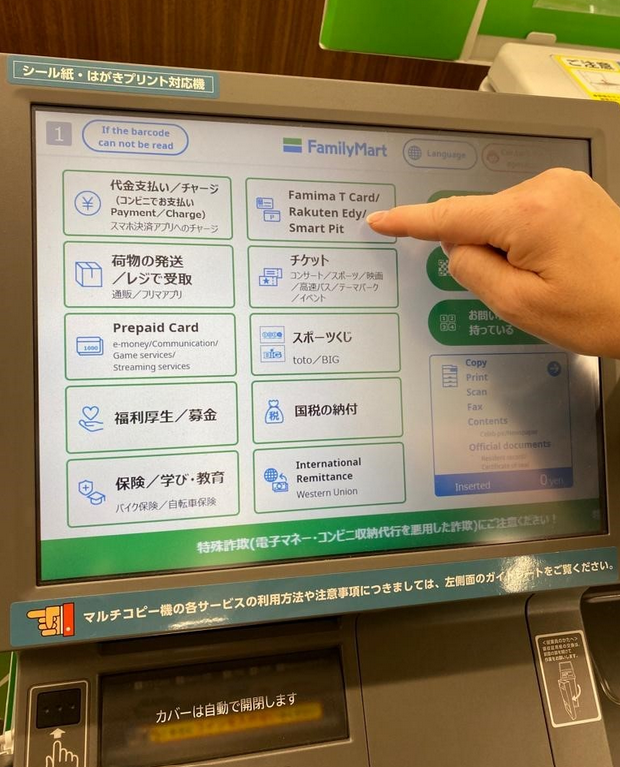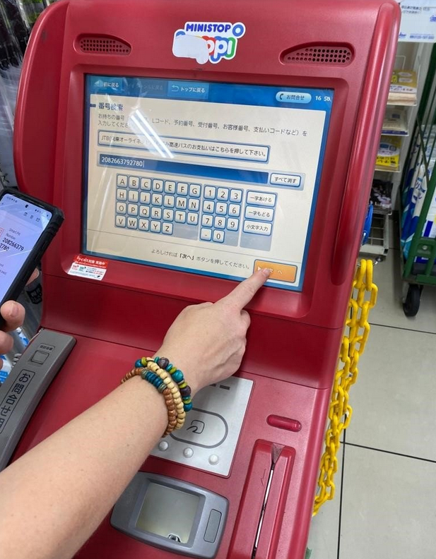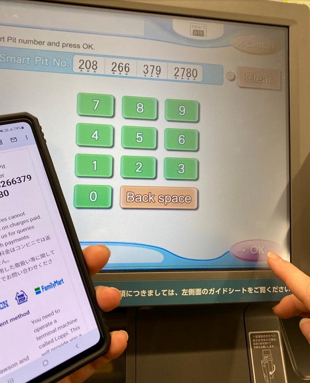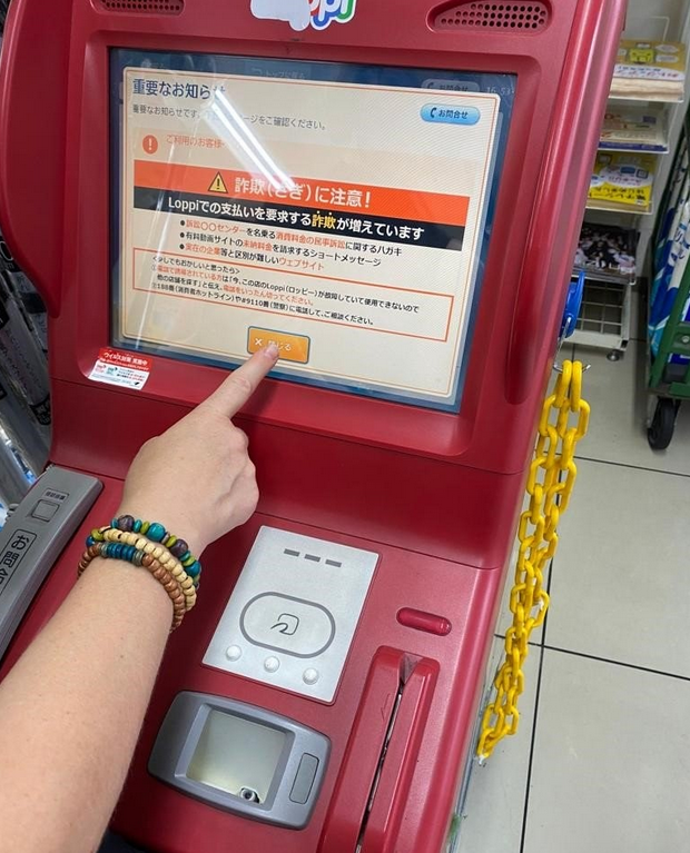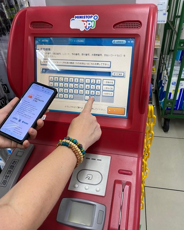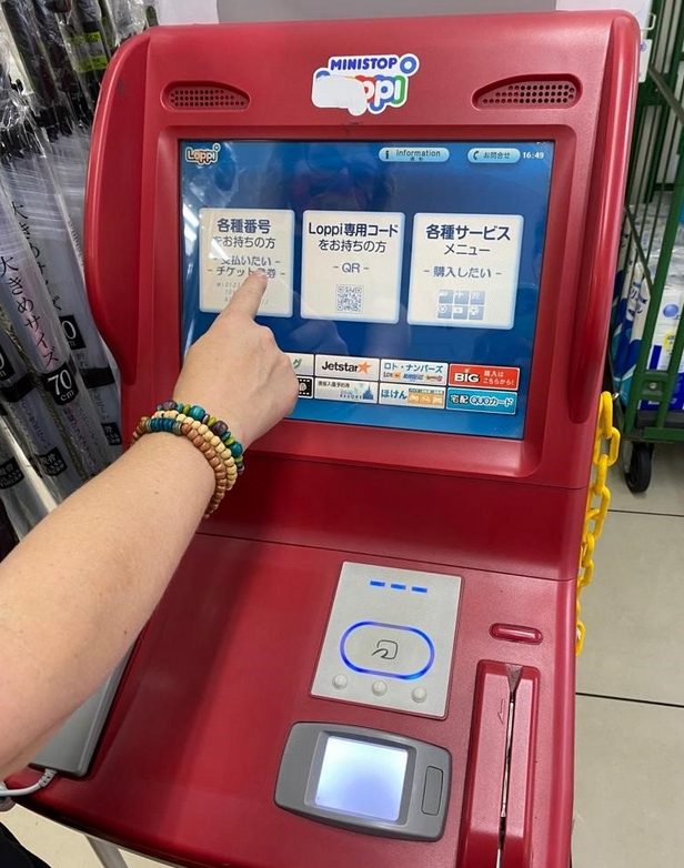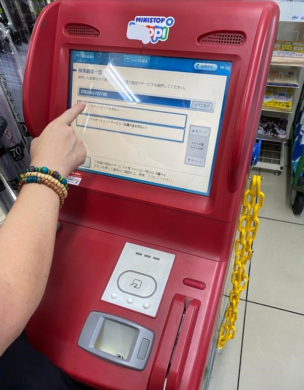 Visit a "Lawson" or "Mini Stop" convenience store and locate their payment machine (which is a multimedia terminal called “Loppi”). Please note that this machine displays the Japanese language only.