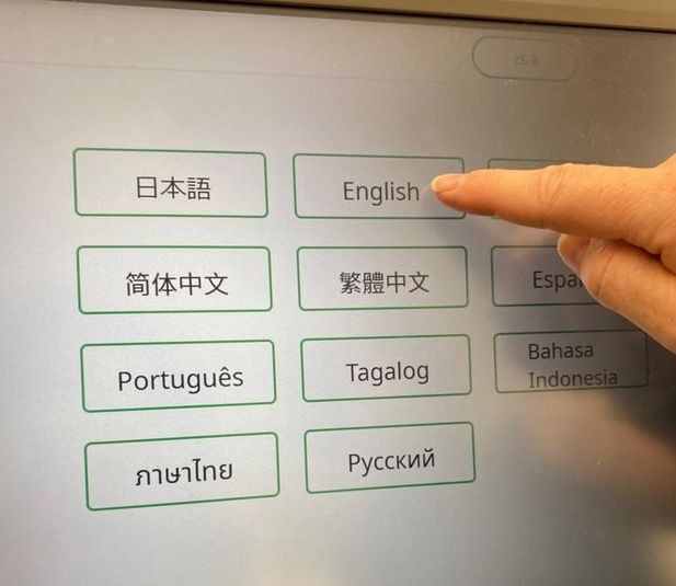 The next screen will display the Smart Pit payment information in several languages, including English. To proceed to the next screen, tap on the green button (which translates to "Confirm").