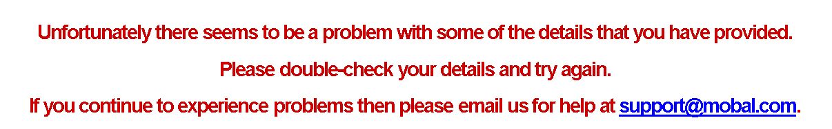 If this error message is shown again however, please contact us via email at support@mobal.com so that we can investigate this further for you.