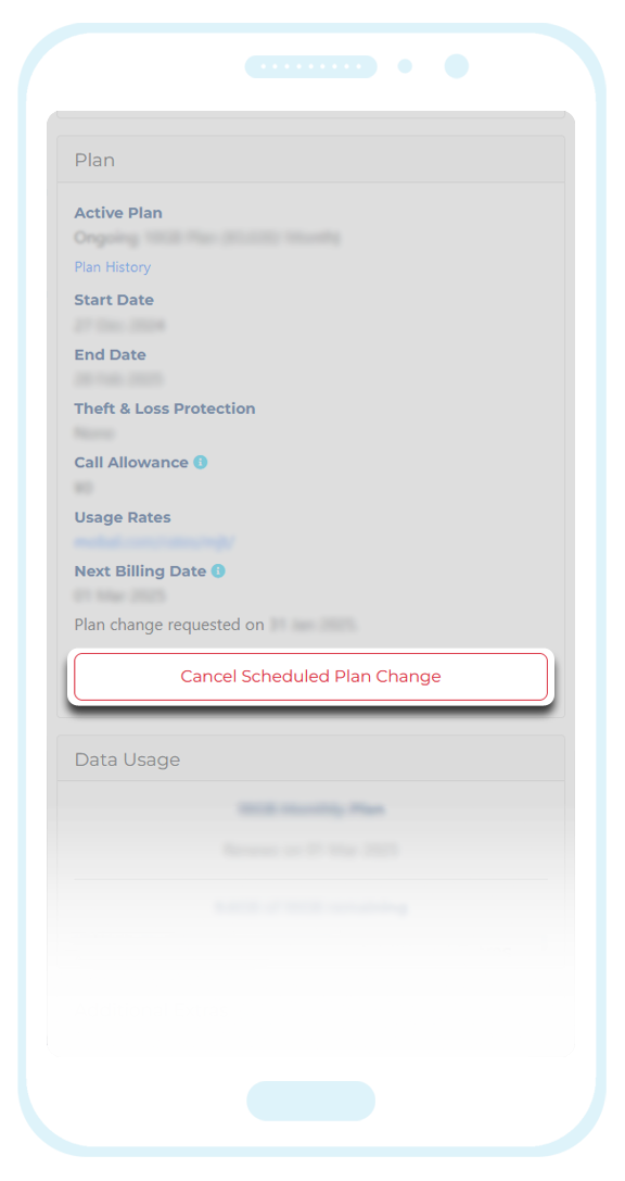 If you have submitted a Termination request or a Plan Change request (for a Voice+Data SIM / eSIM or a WiFi Device) but you would like to cancel your pending request, please login to your Mobal online account: www.mobal.com/myaccount