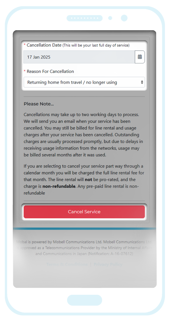 Once you have finished using your Mobal plan and you are ready to terminate the service, please refer to the relevant guide below (for your specific product type) for additional instructions -