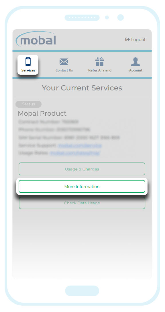 Once you have logged in, simply visit the "Services" section and then click on the "More Information" button (found next to the relevant product) as shown in the example below -