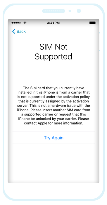 The error message may also state that "the SIM is not supported under the activation policy" and that it is "not a hardware issue with the iPhone" as shown in the example below -